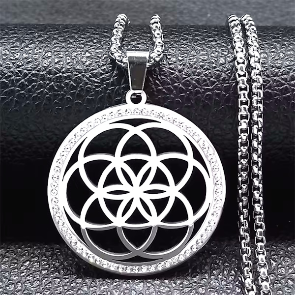 „Die Saat des Lebens ist eine Formation, in der die inneren sieben Kreise der Blume in einer sechsfachen Symmetrie angeordnet sind. Im Christentum und Judentum steht dies für die sieben Tage der Schöpfung, also die sieben Tage, in denen der jüdisch-christliche Gott das Leben geschaffen hat. Die Vesica Piscis ist der Schnittpunkt der beiden Kreise mit dem gleichen Radius, wobei die Mitte von jedem Kreis auf dem Umfang des anderen liegt. Es wird angenommen, dass sie am ersten Tag erschaffen wurde, gefolgt von der Erschaffung des Stativs des Lebens am zweiten Tag und der anschließenden Hinzufügung eines Kreises bis der letzte Kreis am sechsten Tag, um den Samen des Lebens zu vervollständigen. Der siebte Tag stellt den Tag der Ruhe dar.“ Quelle: Anthrowiki
