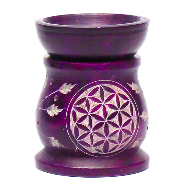 Duftlampe aus Speckstein Blume des Lebens Purpur