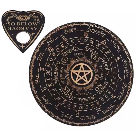 Ouija Board Pendeltafel Holz rund 25cm mit Planchette
