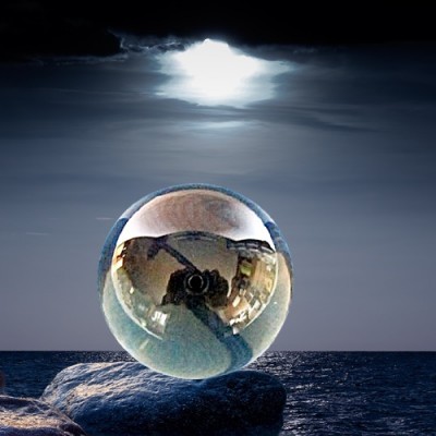 Die Glaskugel dient in der Hellseherei als ein Übertragungsmedium. Dabei konzentriert man sich so lange auf die Glaskugel, bis die Visionen erscheinen.