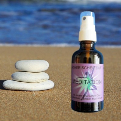 Dieses Spray enthält eine Duftmischung welche die fähigkeit zur Meditation fördert, aus drei naturreinen, ätherischen Ölen, Cedernholz, Lorbeer und Muskatnuss, gelöst in reinem Ethanol (Weingeist).
