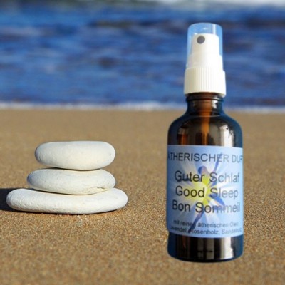 Dieses Spray enthält eine Duftmischung welche einen tiefen, erholsamen Schlaf fördert, bestehend aus drei naturreinen, ätherischen Ölen, Lavendel, Sandelholz und Rosenholz, gelöst in reinem Ethanol (Weingeist).