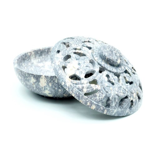 Speckstein-Räucherschale ‚Blumen‘ Ø 10cm.