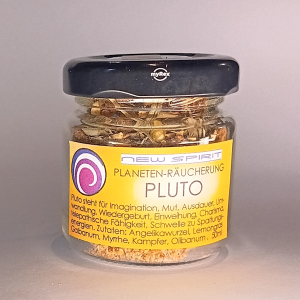 Pluto steht für Imagination, Mut, Ausdauer, Umwandlung, Wiedergeburt, Einweihung, Charisma, telepathische Fähigkeit, Schwelle zu Spaltungs-energien. Zutaten: Angelikawurzel, Lemongras Galbanum, Myrrhe, Kampfer, Olibanum . 50ml