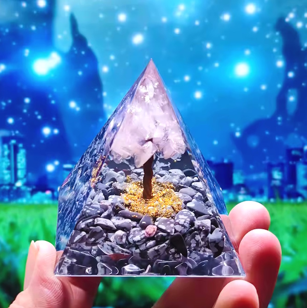 Orgonit Pyramide 5cm Rosenquarz Baum