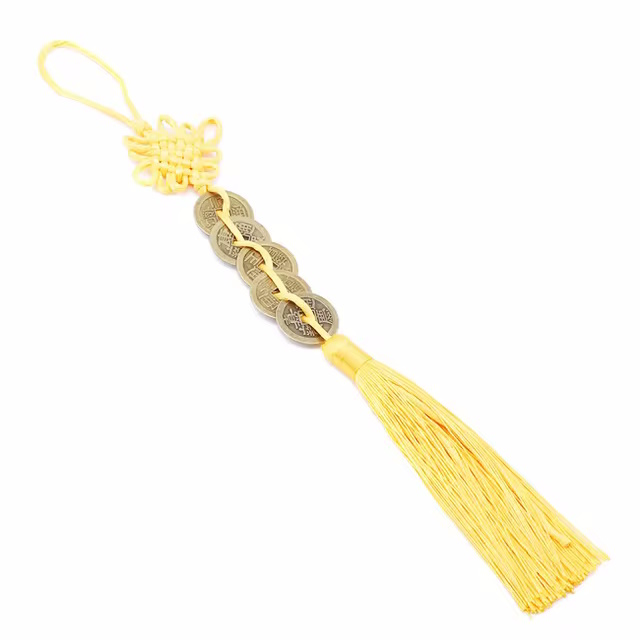 Chinesisches Feng Shui Knoten-Ornament für Reichtum und Erfolg mit 5 Kupfermünzen