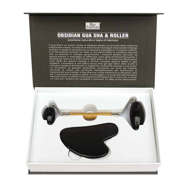 Gua Sha Stein und Massageroller Obsidian Set in Box